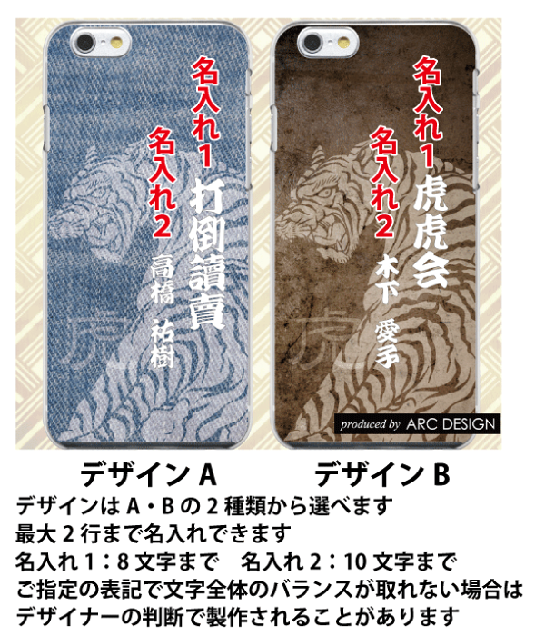 4,000円以上のお買い物で 送料無料!(メール便発送) 阪神タイガースファンにおすすめ! 味のある和柄の虎デザインに名入れができるスマホカバー 機種によって異なるスマートフォンの複雑な背面デザインを考慮して、 デザイナーが1点1点丁寧にレイアウトするので、 名入れ文字の一部が欠ける心配はありません。