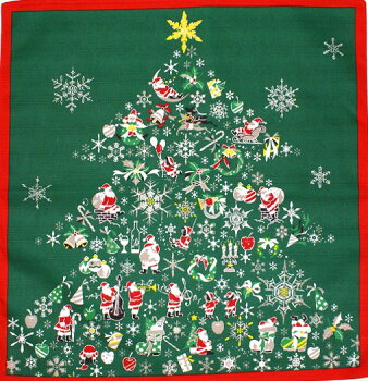 【 風呂敷 】 クリスマス ★ サンタ ツリー 綿 小風呂敷(約50cm巾)[ クリスマスツリー タペストリー 和風 サンタ サンタクロース 四季 季節 冬 12月 雪 結晶 プレゼント グリーン みどり 緑 インテリア 飾り ディスプレイ ディスプレー 壁掛け 掛軸 ]